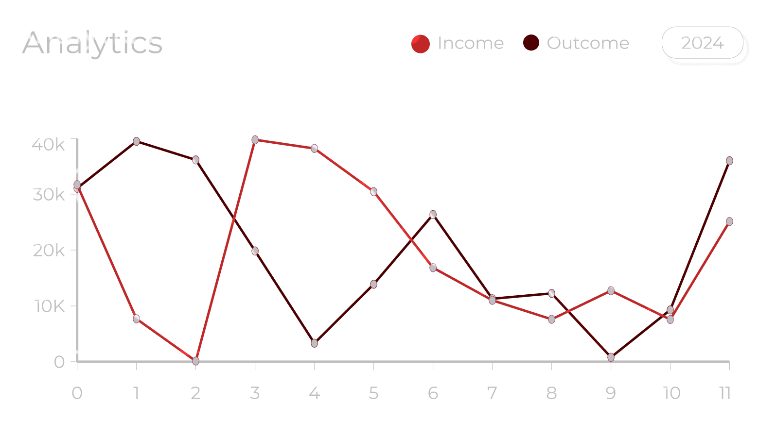 A dynamic line graph displays income and expenditure trends, offering deep insights into financial health. This feature enables users to identify growth opportunities, control costs, and make informed decisions for future investments.