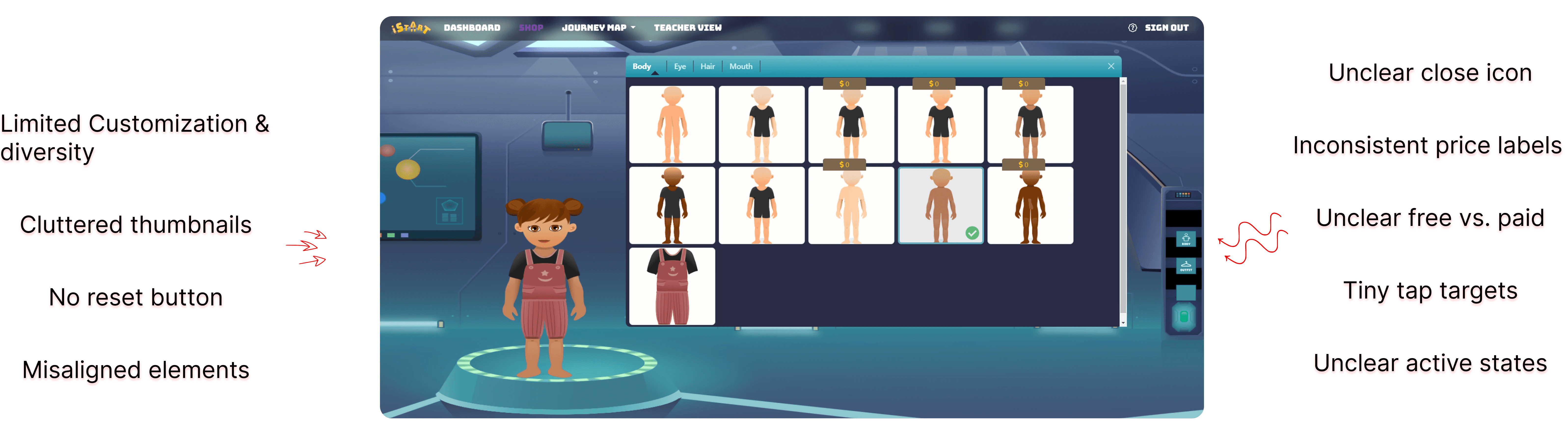 Despite its strong educational foundation, the interface lacked the visual engagement needed, making it difficult for students to stay motivated and emotionally invested in their learning journey.