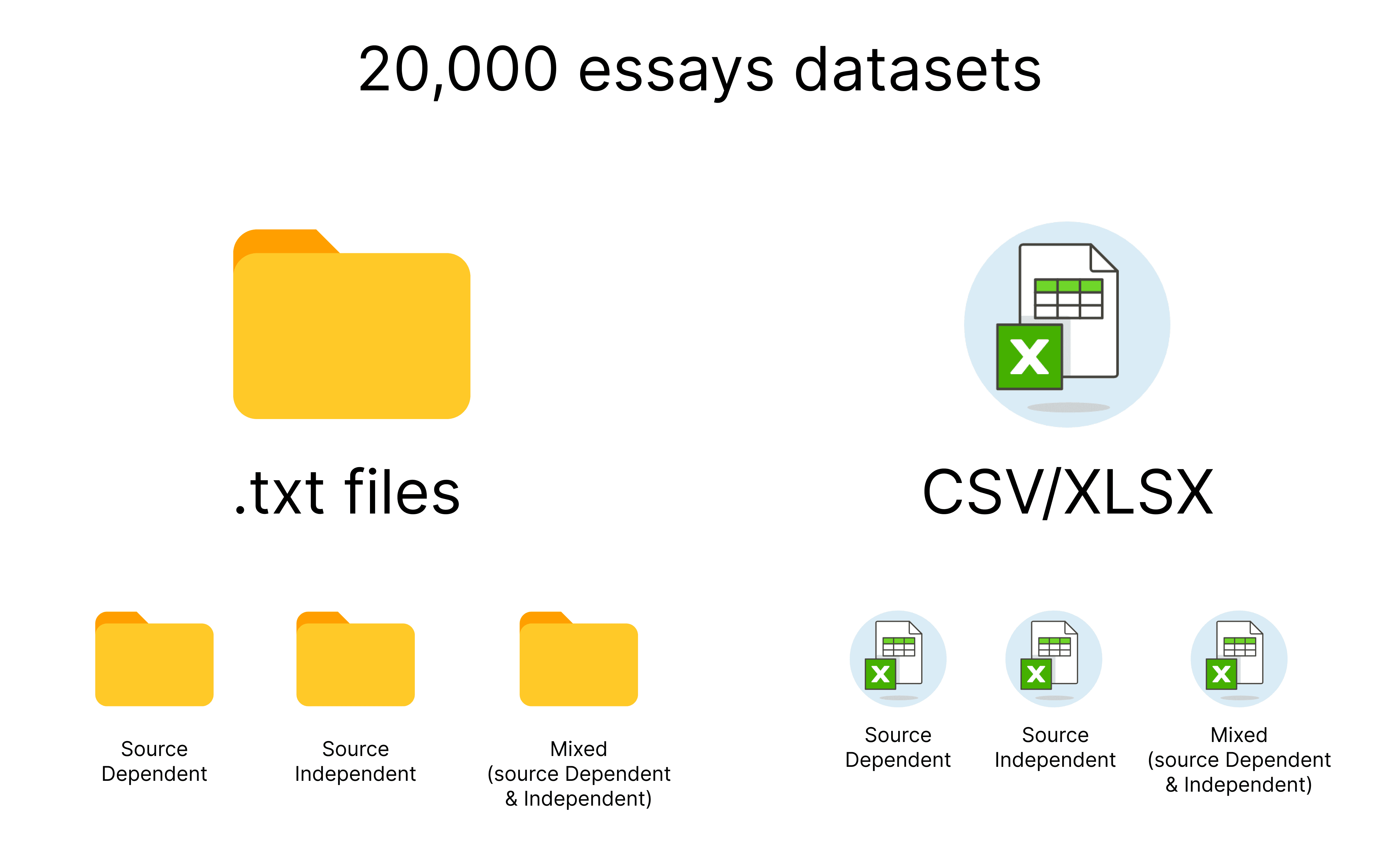 So to perform stress test, I generated 20,000 essays datasets using ChatGPT, for Folder mode as .txt files and spreadsheet files (CSV/XLSX) including Source-dependent, independent and mixed types.